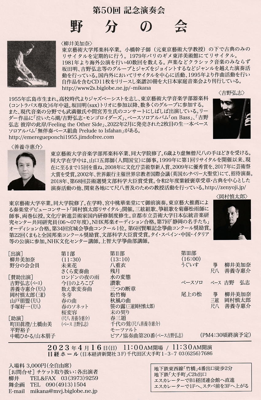 後援 : 公益社団法人 日本三曲協会